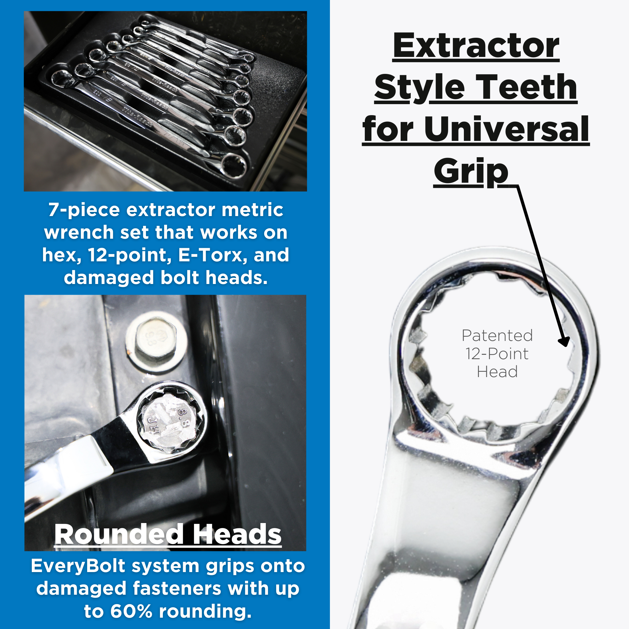When rounded bolts stop the job, EveryBolt gets it done. This 7-piece extractor metric wrench set is designed to grip standard hex, 12-point, and even...